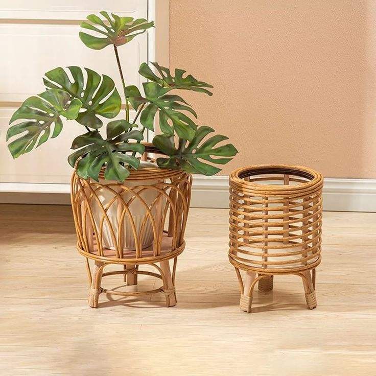 Garden Decor Rattan Planters with Iron Stand Natural Rattan Planter with Large Floor Standing Black Stand in Low Price