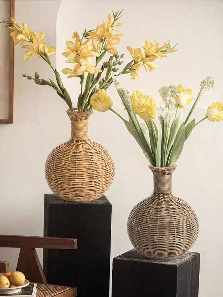 Garden Decoration Iron & Cane Round Planter and Natural Colour Wicker and Seagrass Planter
