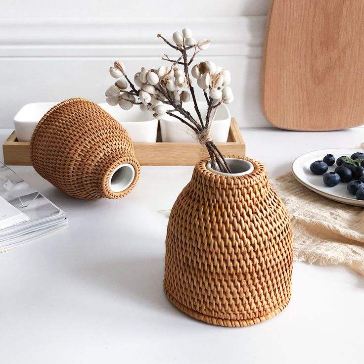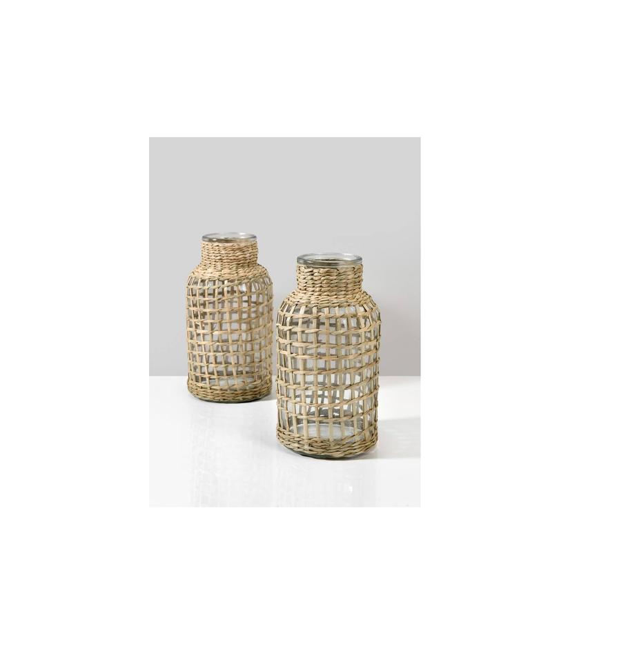 Garden Decoration Iron & Cane Round Planter and Natural Colour Wicker and Seagrass Planter