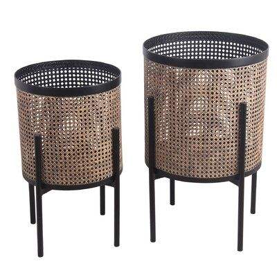 Garden Decoration Iron & Cane Round Planter and Natural Colour Wicker and Seagrass Planter