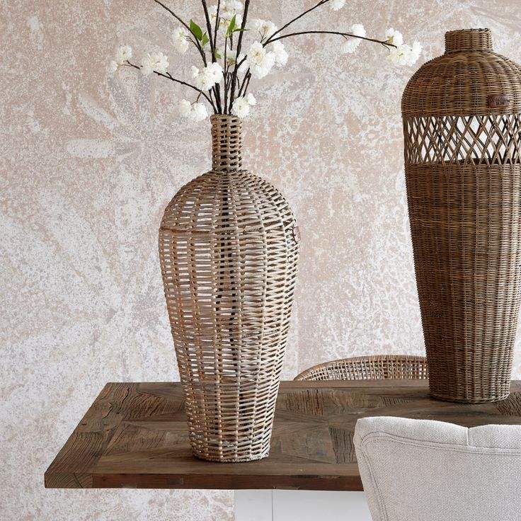 Garden Decoration Iron & Cane Round Planter and Natural Colour Wicker and Seagrass Planter