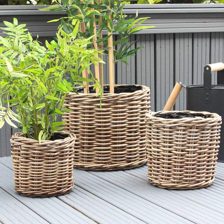 Garden Decoration Iron & Cane Round Planter and Natural Colour Wicker and Seagrass Planter
