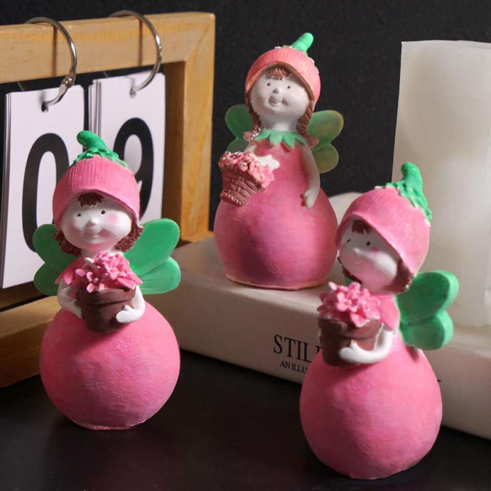 Garden Elf Candle Flower House Fairy Holding Flower Basket Doll Desktop Little Angel Gypsum Candle Silicone Mold