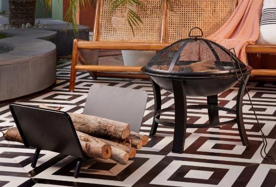 Garden Fire Pit Black Powder Coated Metal Bonfire Stand Large Lawn Farmhouse Displayed Fire Pit For Camping Picnic Accessories
