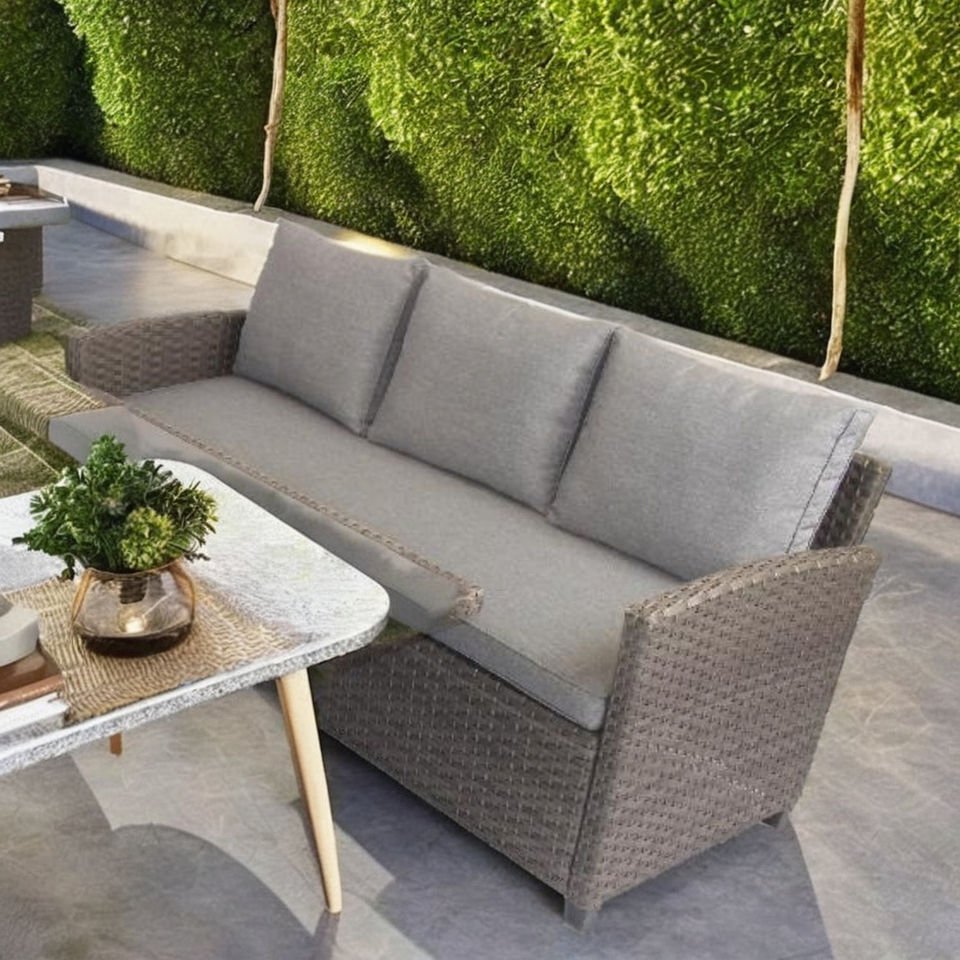 Restaurant Furniture Modern Design 4Pcs Outdoor Rattan Sofa Set with Cafe Tables Chairs 6-Seater 5Cm Cushions Phu Linh Vietnam