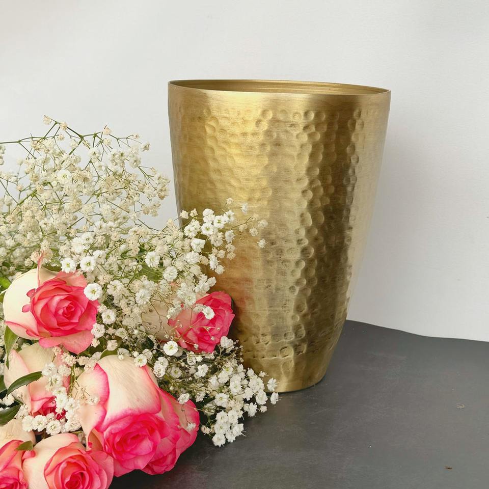 Garden Modern Art Deco Decorative Aluminium Flower Vase | Tumbler Shape | Antique Gold Finish | Festive Gifts