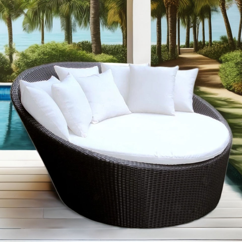 Modern Aluminum Frame PE Rattan Weave Polyester Cushions Moon Chair & Sun Loungers for School Park Hotel Outdoor Use