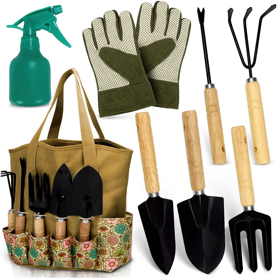 Garden Tool Set With Wooden Handle Stainless Steel Digging Planting Weeding Kit For Outdoor Gardening Use