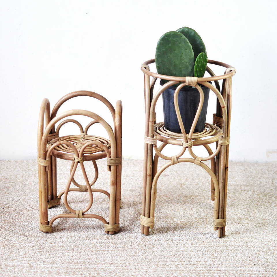 Garden organizer rack for plant pots 2-tier rattan display holder stands handmade wicker flower planter stand