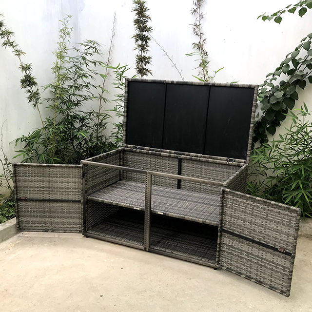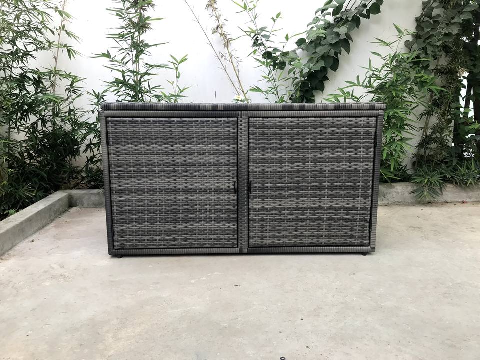 All-Weather Outdoor Garden Set Gray All-Weather Wicker Patio Storage Box Gray Rattan Aluminum Metal Decorative Outdoor Furniture