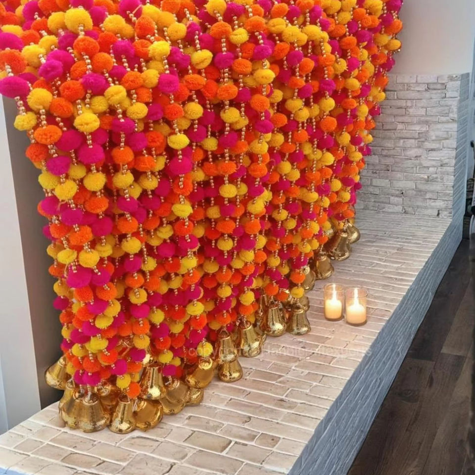 Garland Indian Decoration Pom Pom Strings Artificial Wedding Christmas Gota Hangings Tassels Toran for Wedding Decoration