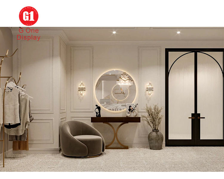 Garment Shop Interior Design Modern Clothing Display Shelf Ladies Clothes Display Stand Customised Display Clothing Counter