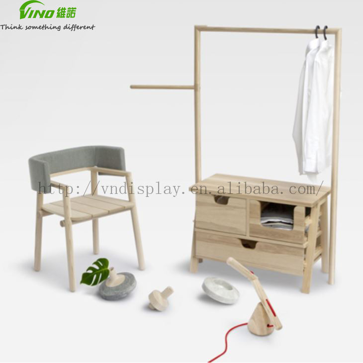 Modern Heavy-Duty Wooden Clothes Rack Floor-Standing Garment Display Stand for Showroom Displaying Stylish Clothing