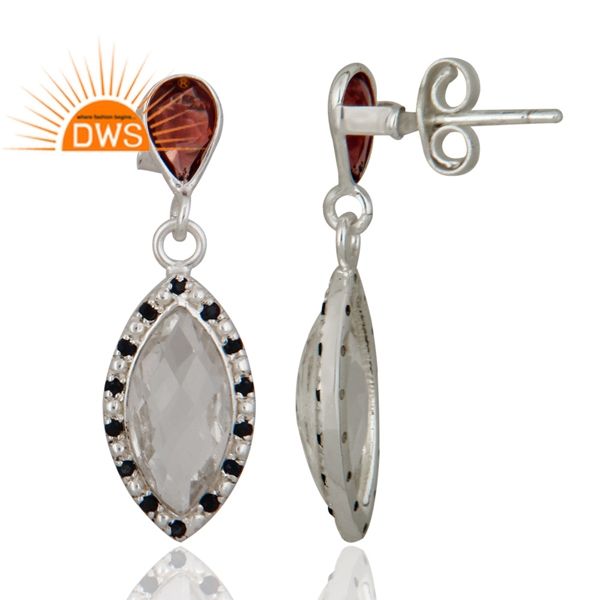 Indian Jewelry Wholesale Classic Garnet Crystal Quartz Gemstone Earrings Solid 925 Sterling Silver Drop Dangle Earring
