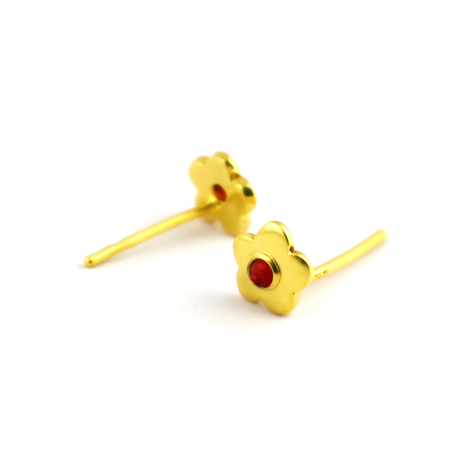 Garnet Flower Stud Earrings: Sterling Silver January Birthstone