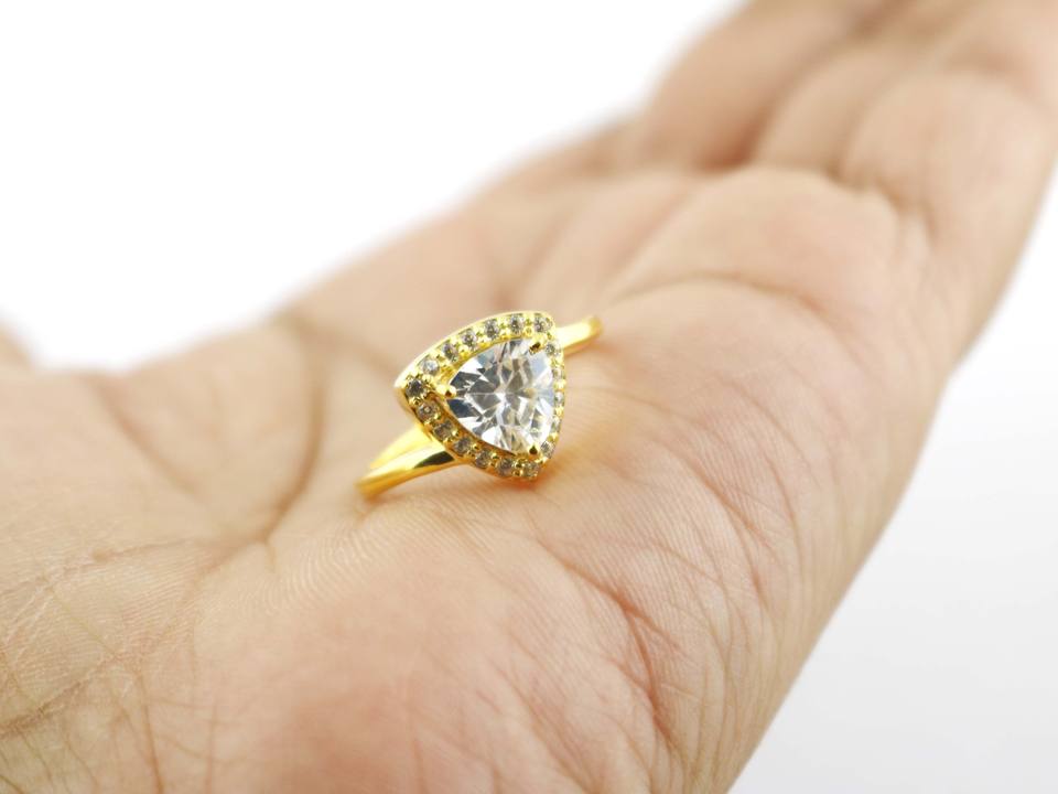 Garnet Trillion Ring 925 Sterling Silver Halo, January Birthstone