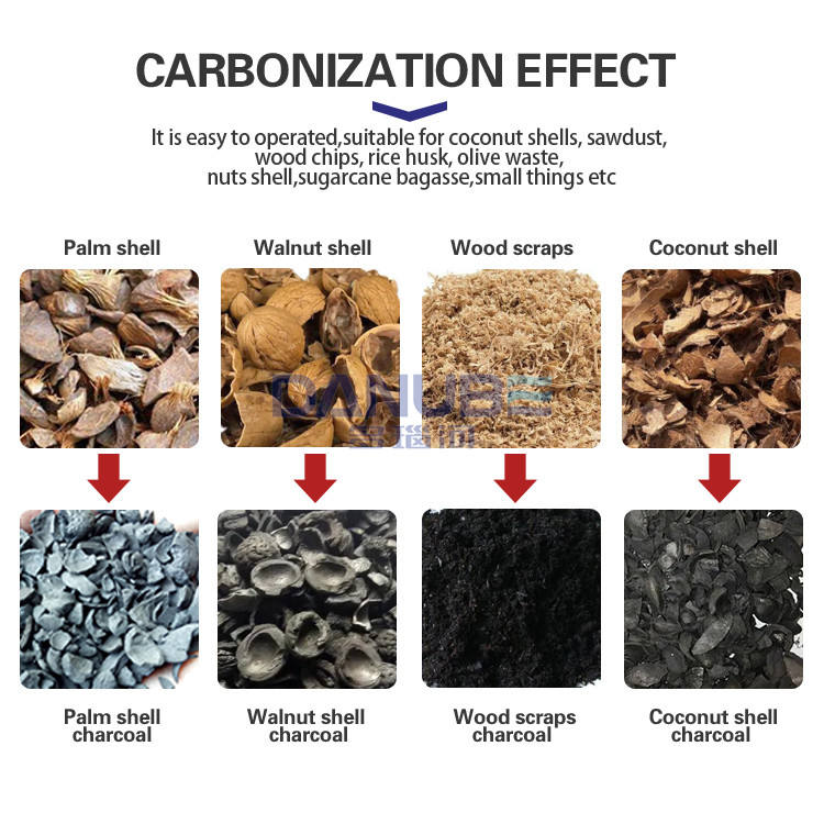 Applicable raw materials:Rice husks, sawdust, wood, coconut shell, nuts shell, corn cob,etc.
