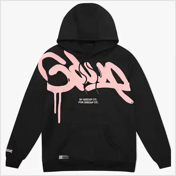 Geed up Printed Hip Hop Hoodie 100% Cotton Heavyweight Pullover with Pocket Design Eco-Friendly Men's Winter Streetwear