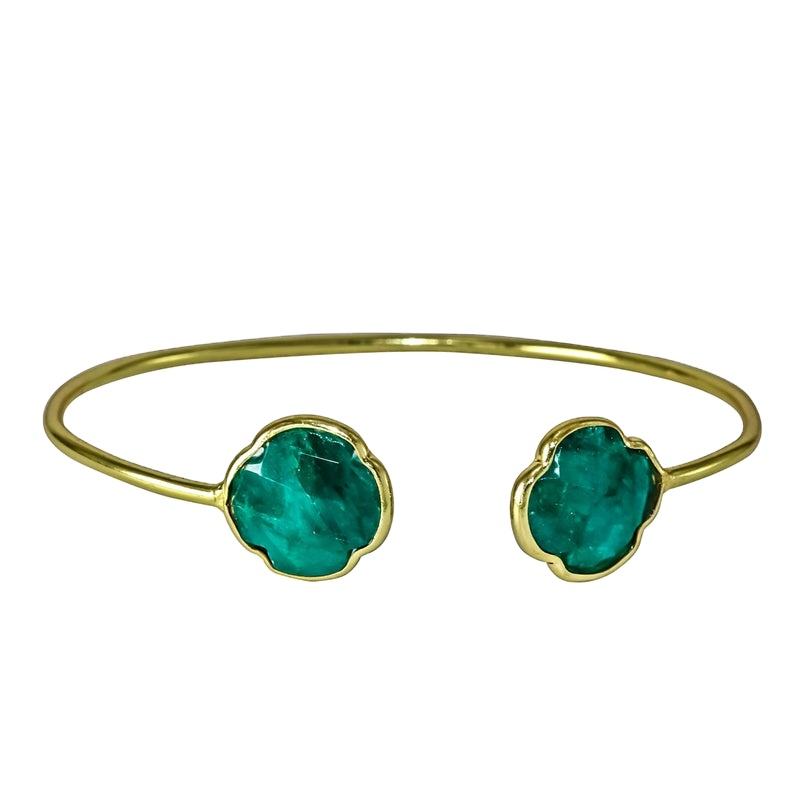 Gem Duo: a Pair of Gold Bracelet Adorned with Sparkling Green Gemstone Bracelet for Women and Girl