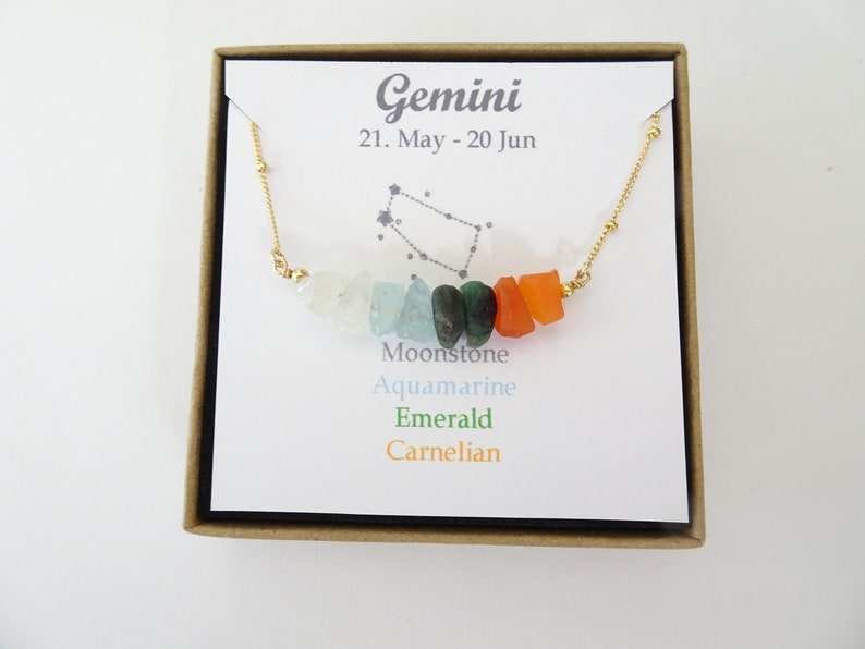 Gemini Zodiac Crystal Raw 92.5 Sterling Silver 20"Long Natural Multi Gemstone Rough Choker Astrology Necklaces Women Jewelry