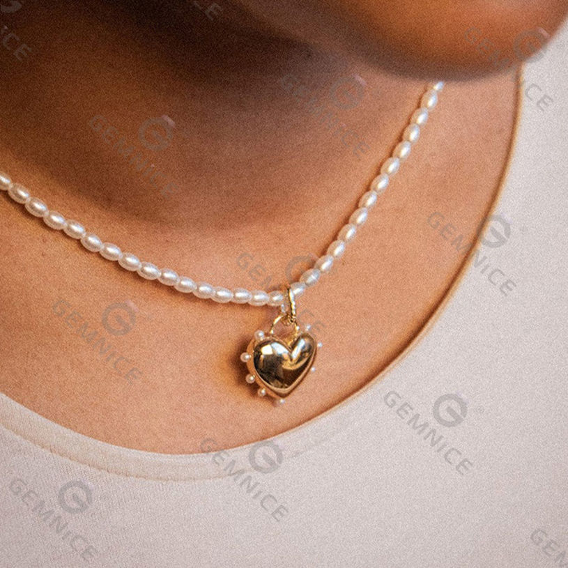 Gemnel 2024 New Arrivals Statement 925 Silver Shrimps Chubby Puffy Heart Pearl Necklace