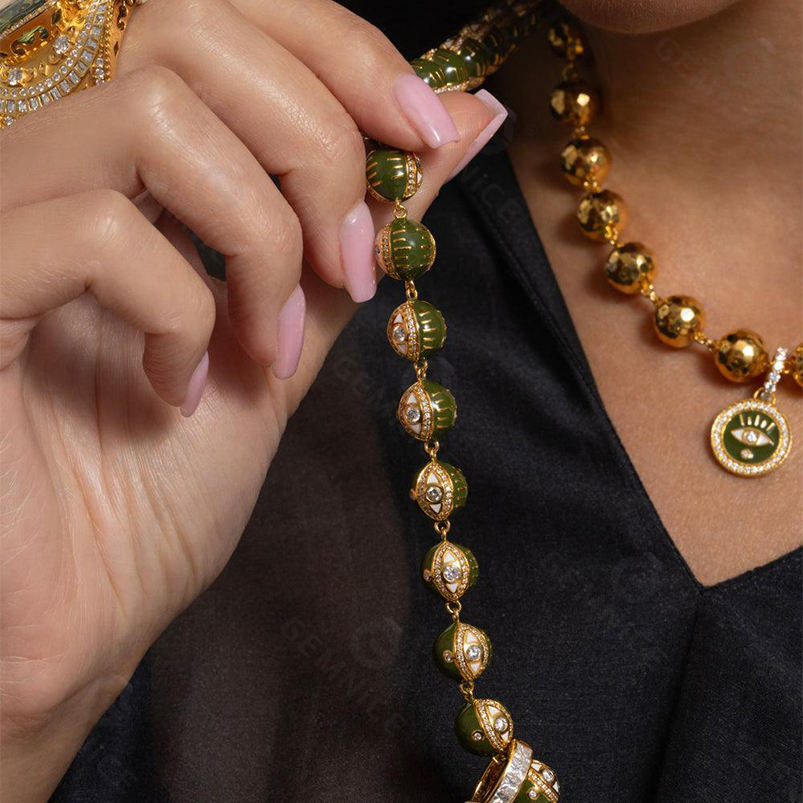 Gemnel 925 Silver Mama Evil Eye Pendant Yellow Gold with Enamel Diamonds Protection Symbol Necklace Charm