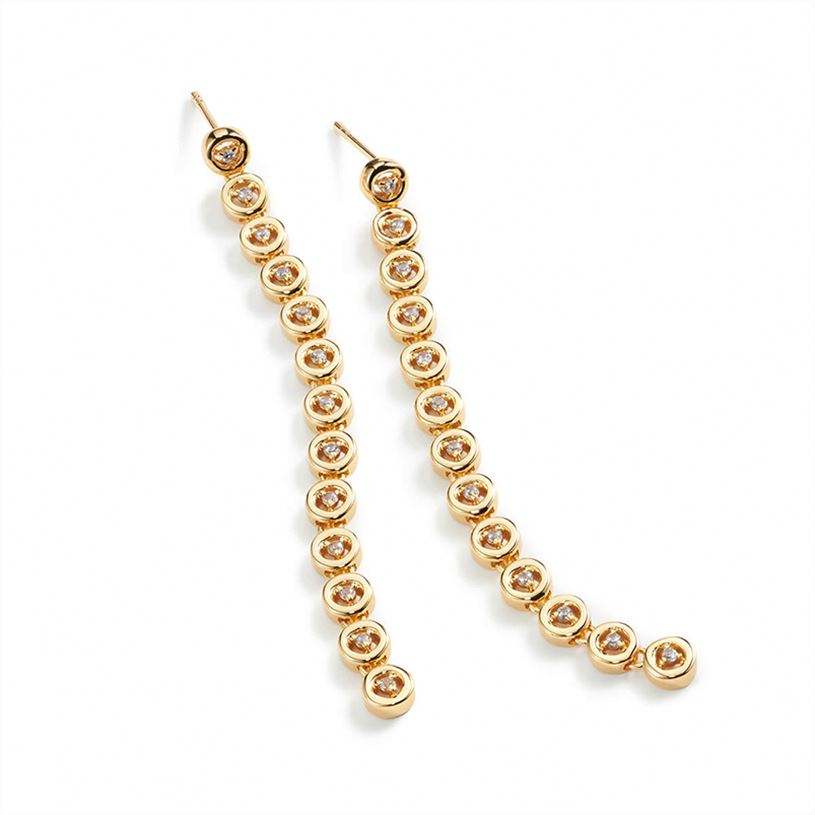 Gemnel Diamond Long Tennis Chain 18k Gold Plating Brass Zircon Long Copper Earrings