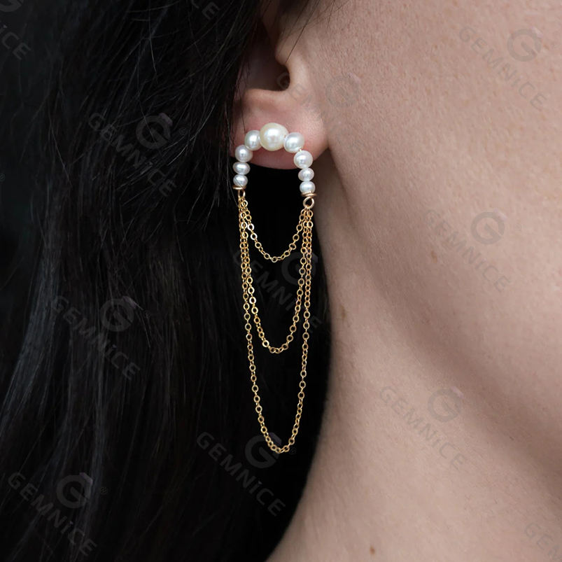 Gemnel Luxury Wedding Jewelry 925 Silver Freshwater Pearls Stud Earring