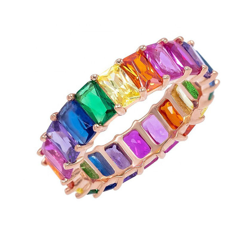 Product:14k gold plated artificial jewellery rainbow baguette eternity rings