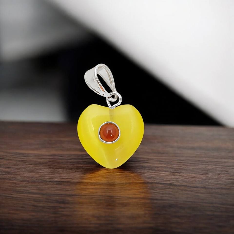 Gemstone 14mm Puffy Heart White Cat's Eye Monalisa Pendant 925 Sterling Silver Bail Pendant Handmade Monalisa Necklace Pendant