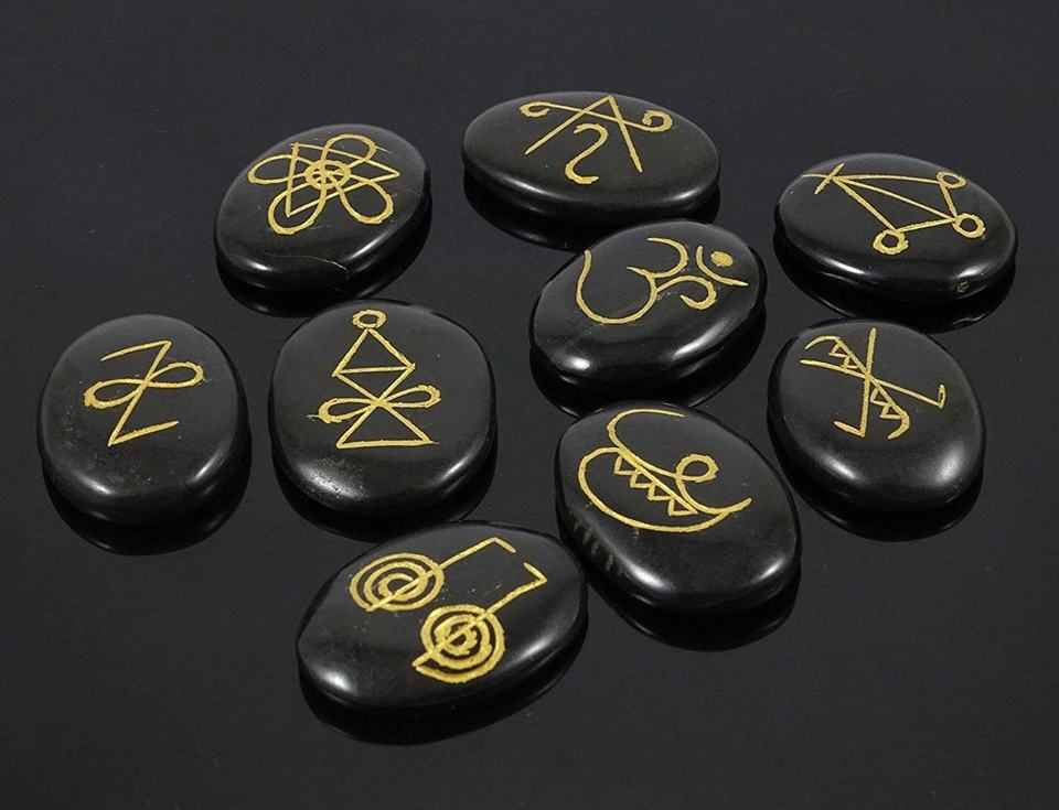 9-Piece Gemstone Chakra Set Natural Agate Tourmaline Stone Karuna Reiki Healing Crystal Spiritual Reiki Symbol by Alfazal