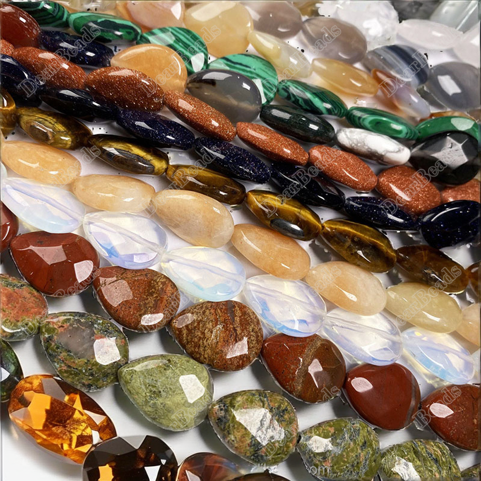 Gemstone Faceted Teardrop Stone Beads Agate Quartz Malachite Unakite Jasper Opalite Goldstone Water Drops 19CM for Jewelry