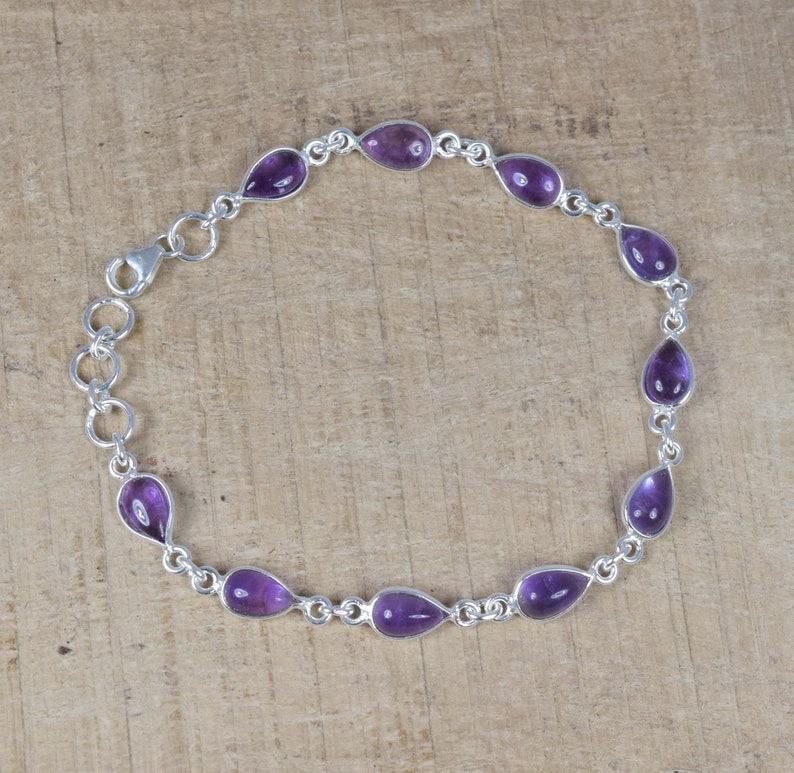 Gemstone Handmade Indian Amethyst Halo Sterling Silver Bracelet for Women Girls-Solid 925 Sterling Silver Trendy Party Gift