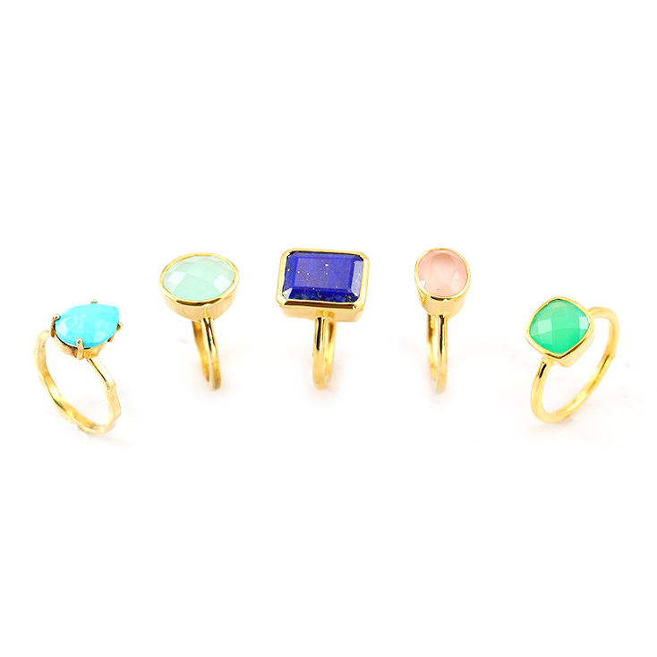Gemstone Rings 925 Sterling Silver Gold Plated Collet Set Handmade Woman Ring Wholesale Jewelry Indian Suppliers Birthstone Ring