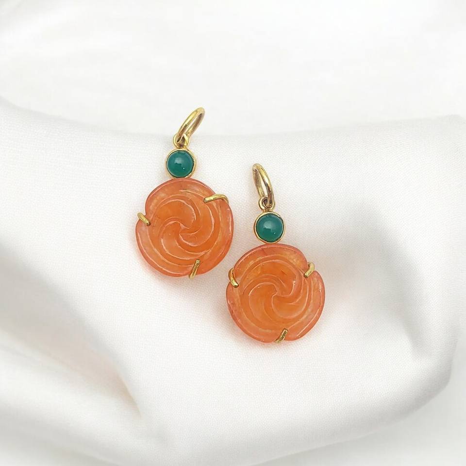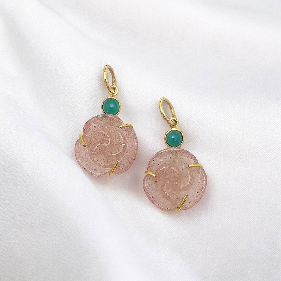 Product Name:Rose Carving Gemstone 15mm Gold Vermeil 925 Silver Pendant