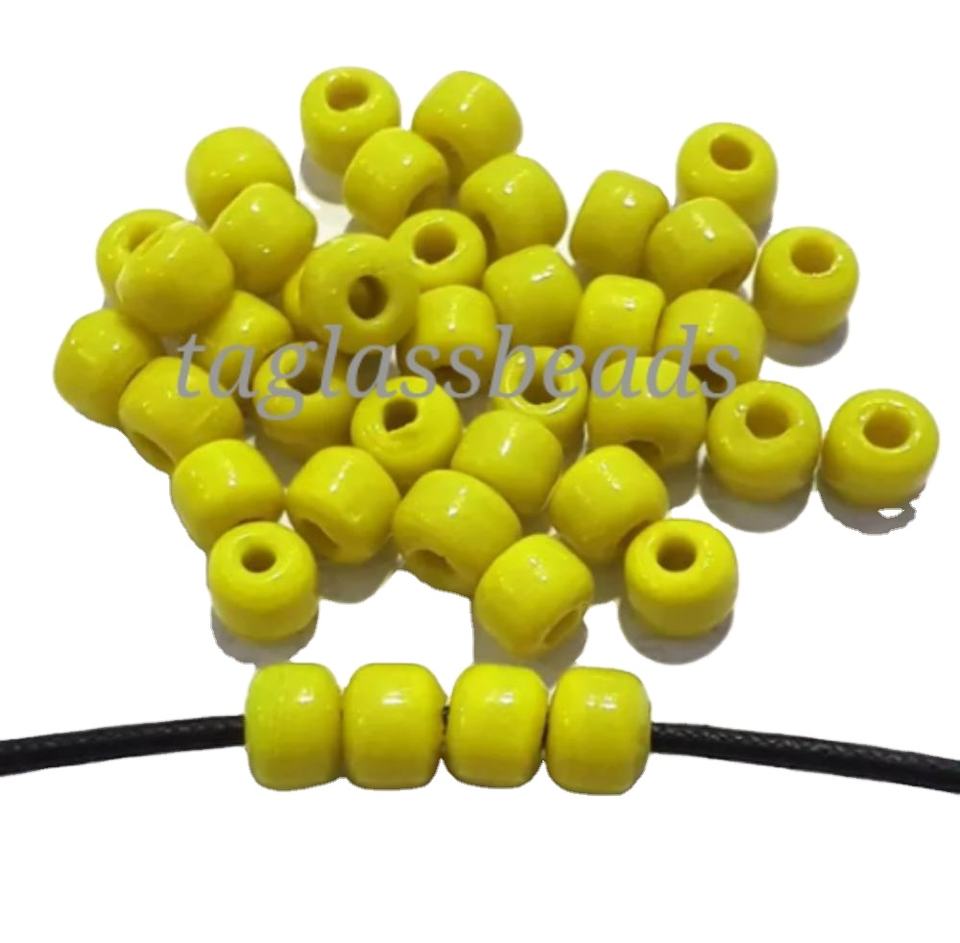 Opaque Yellow Crystal Lampwork & Glass Beads round Gemstone Pony Beads