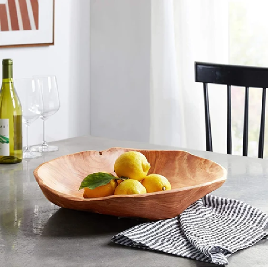 Generous wooden fruit bowl. Natural and rustic kitchenware. Available at wholesale prices.