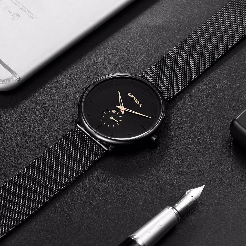 Geneva GEN15-27 Minimalist Watch Men Ultra Thin Blue Stainless Mesh Belt Watch the Lowest Price Most