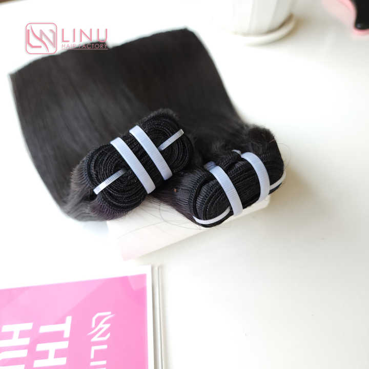Genius Weft Raw Hair Vietnamese Double Drawn Human Hair Extensions Silky Bone Straight Natural Black Color