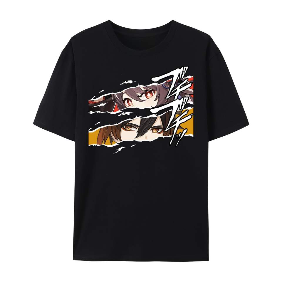 Genshin Impact T-Shirt,All Characters Eye Design Short Sleeve Cotton T-Shirt Graphic Tie Dye t Shit