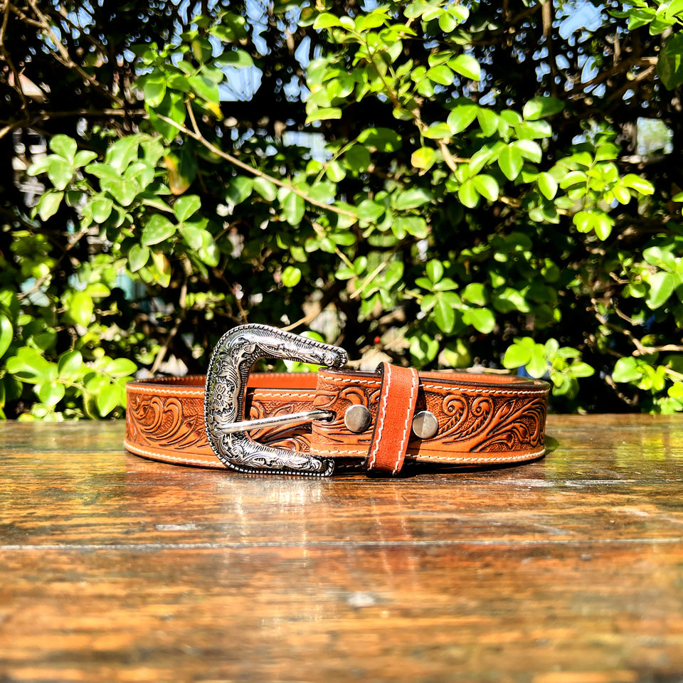 Genuine 100% Leather Western Carving Belt with Meticulously Handcrafted Premium Full Grain Leather Brass for Buckle for Gaucho
