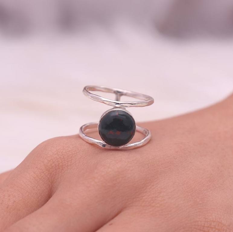 Genuine 10mm Bezel Setting Solid 925 Sterling Silver Double Band Ring Dark Red Blood Stone Classic Style for Wedding Party Wear