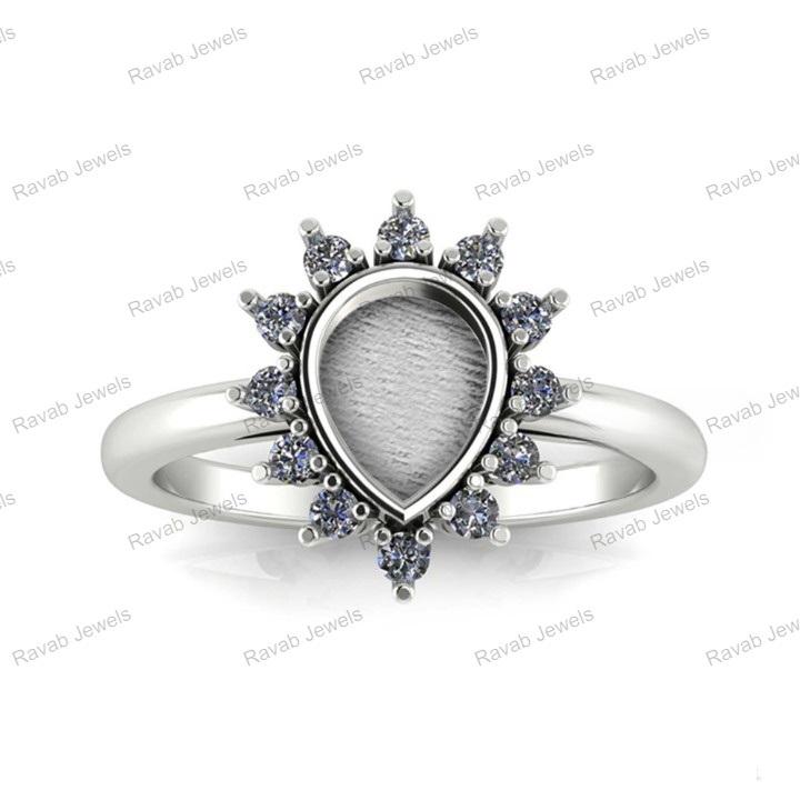 Genuine 925 Sterling Silver Bezel Inlay Breastmilk Ring Pear 6x8mm CZ Set Semi Mounting Setting for Women Classic Jewelry Band