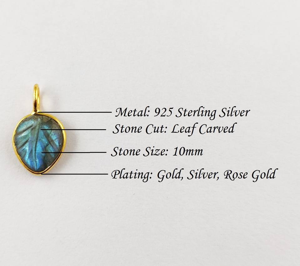 Genuine Amazonite Gemstone Size10x8mm Leaf Shape Carved 925 Sterling Silver Gold Vermeil Bezel Set Pendant Gemstone Silver Charm