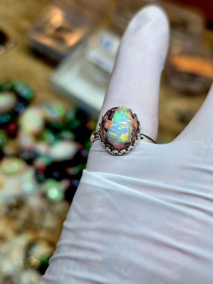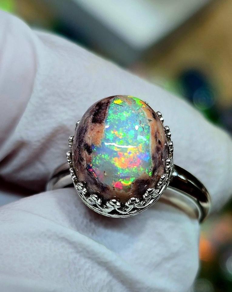 Genuine Australian Rare Opal 14K Gold Luxury Ring Nickel-Free Unique Color Play Fine Craftsmanship Elegant Exquisite Jewelry