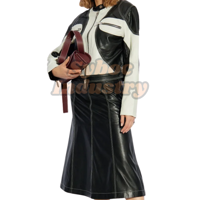 Genuine Black Leather Moto Jacket Women's Plus Size 2025 Vintage White Leather Moto Jacket For Ladies