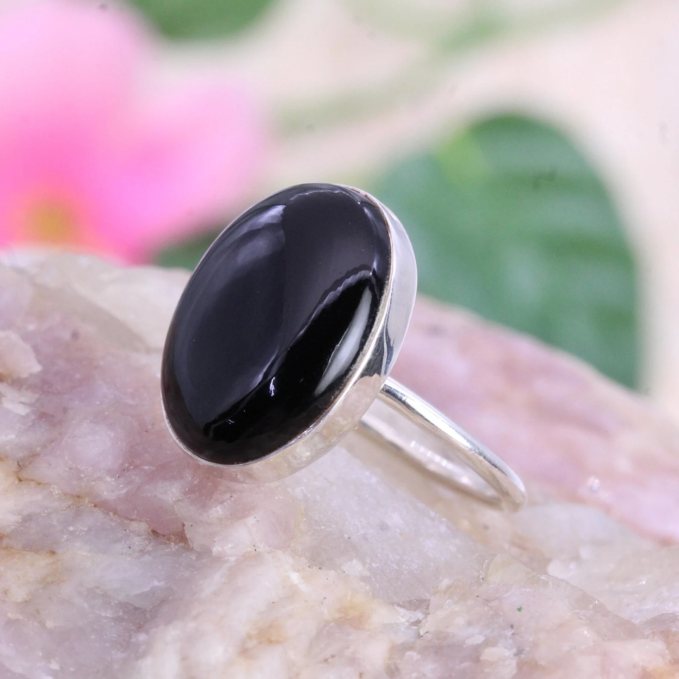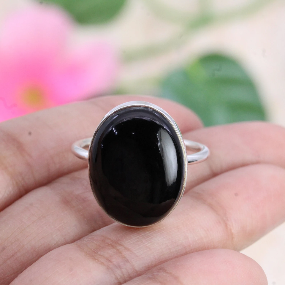 Handmade 925 Sterling Silver Ring Genuine Black Onyx with Black Crystal December Birthstone Wedding or Gift Ring for Women