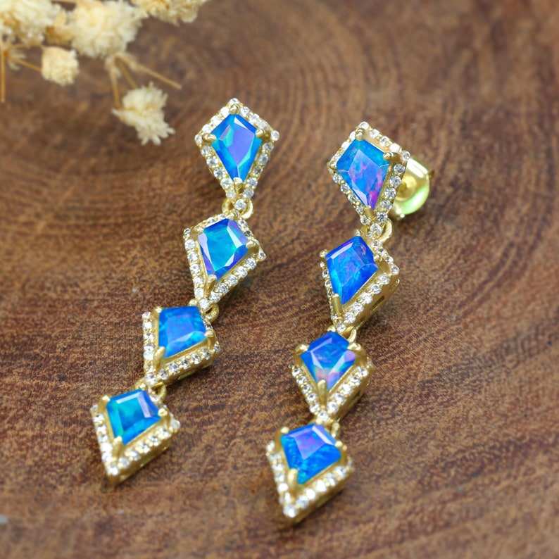 Keyword:Blue Fire Ethiopian Opal Stud Earrings Sparkling multi fire Stones