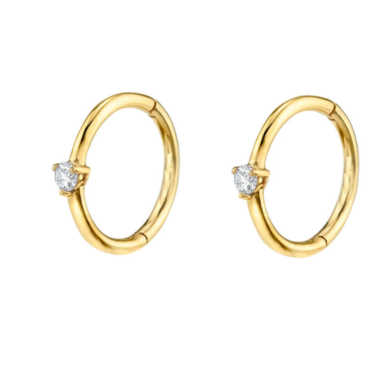 Genuine Brilliant Cut Solitaire Diamond Huggie Hoop Earrings Solid 14K Yellow Rose White Gold Classic Party Jewelry Wholesale