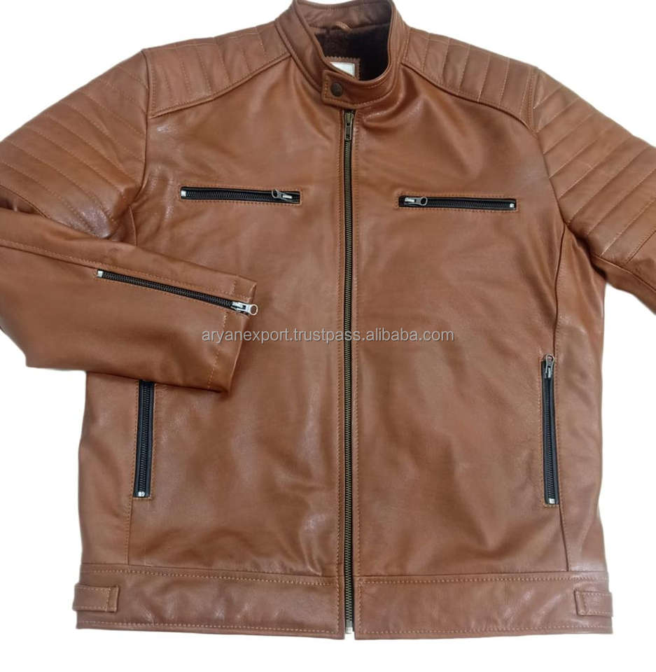 Genuine Brown Leather Puffer Jackets for Men Vintage High Quality Casual Classic Biker Style Outdoor Hiking Royal Look Jackets